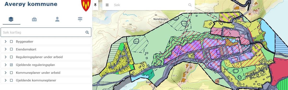 I GeoInnsyn finner du blant annet gjeldene kommuneplan, reguleringsplaner og en oversikt over igangsatte planer. Du har herfra også tilgang til byggesaker og eiendomsinformasjon.